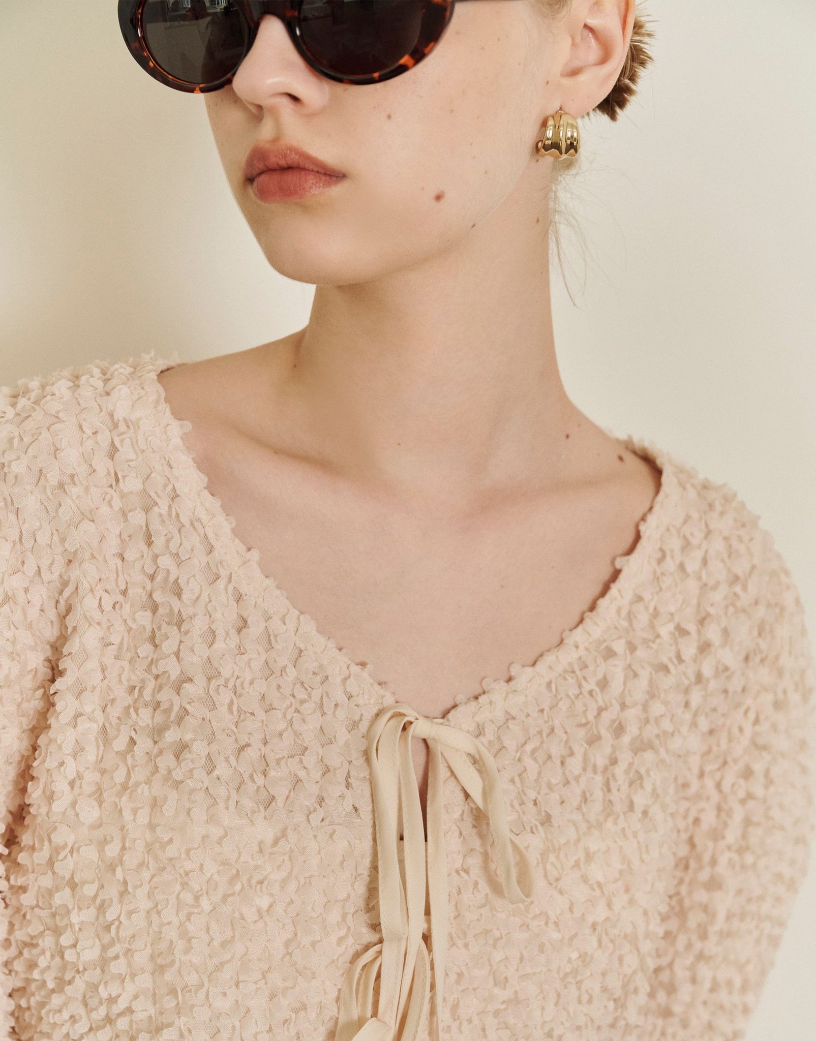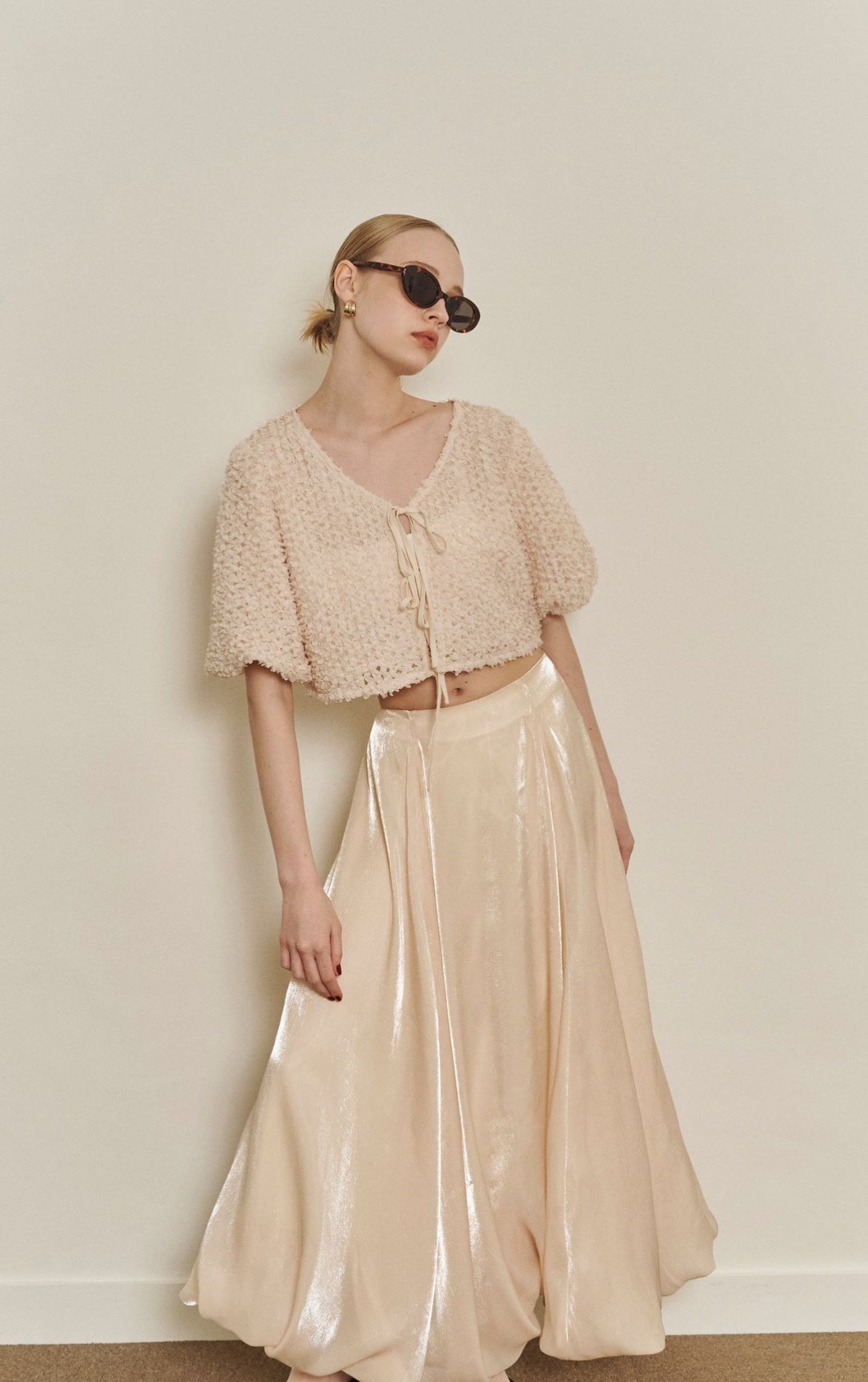 Puffy Sleeves Lacy Strap Cardigan