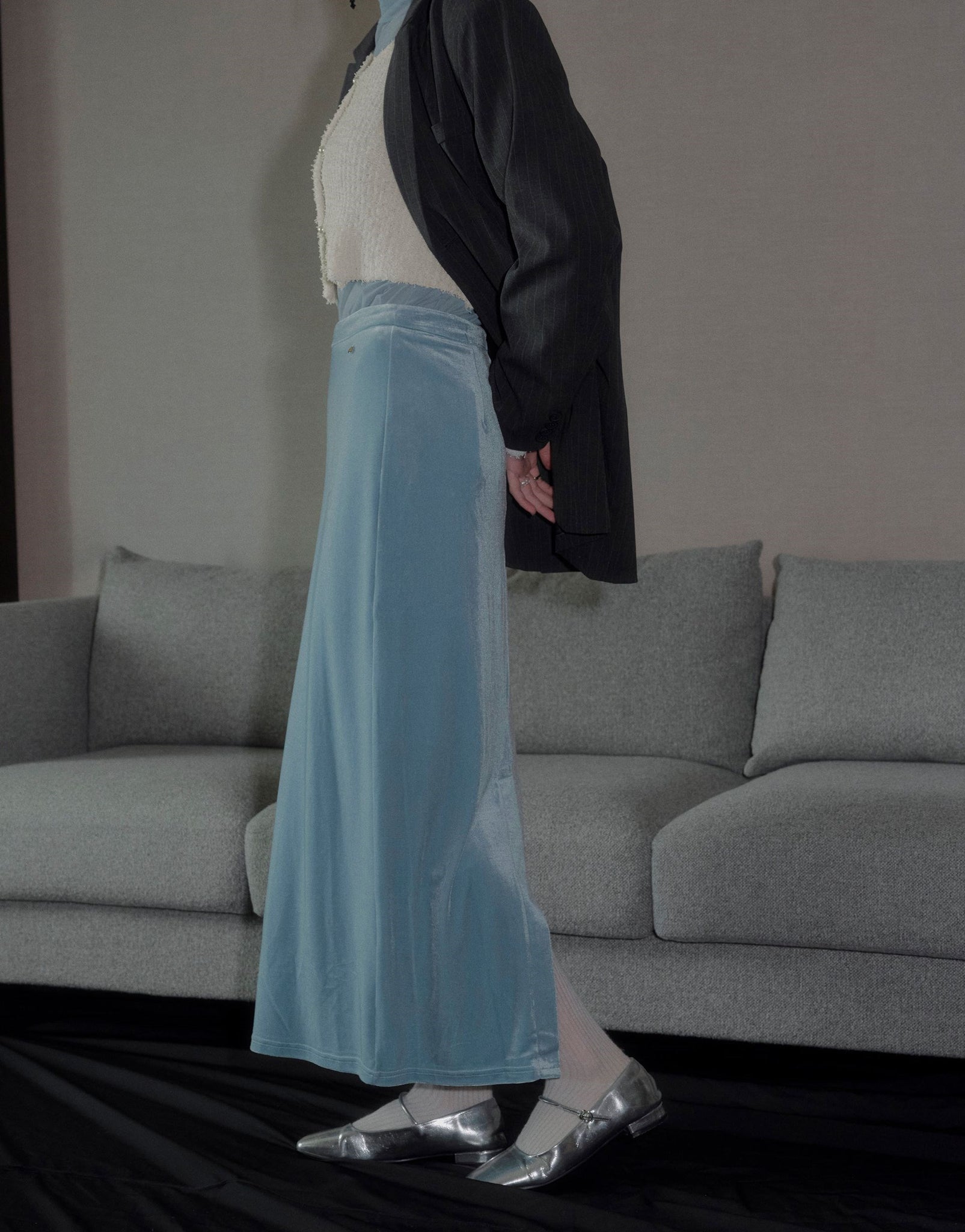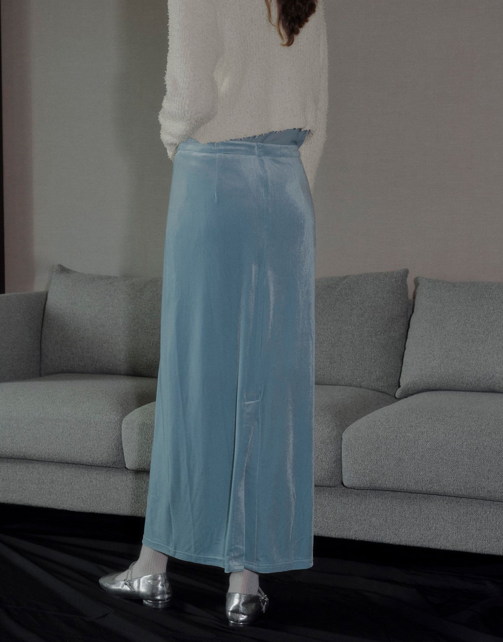 velvet long skirt winter style